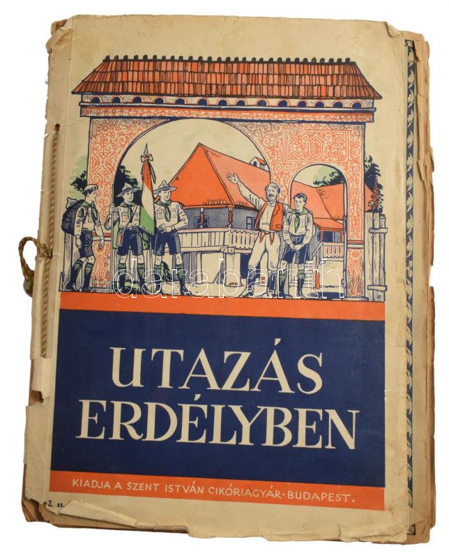 cca 1930-1940 Utazás Erdélyben, a Szent István Cikóriagyár gyűjtőalbuma (2. sz. füzet), hiányzó képekkel, sérülésekkel