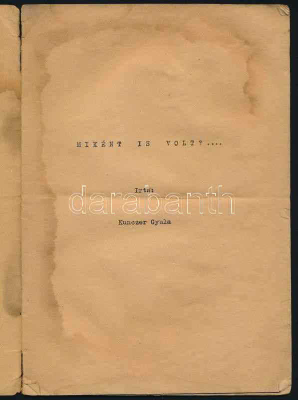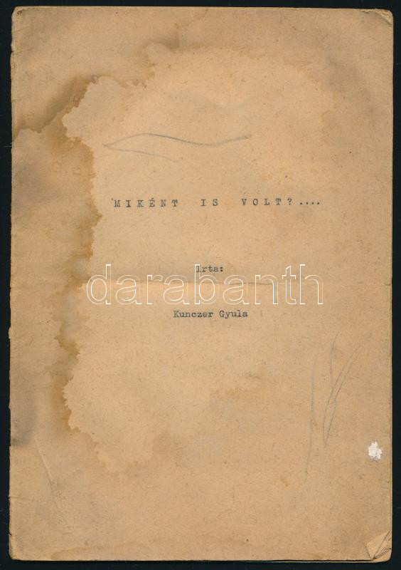 cca 1926-1930 Kunczer Gyula: Miként is volt?... Kunszery Gyula (szül. Kunczer) (1906-1973) tanár, politikus, író, költő korai verseit tartalmazó, gépelt verseskötet. Tűzött papírkötés, ázásnyomokkal, két oldalon ceruzás firkákkal, 14 p.