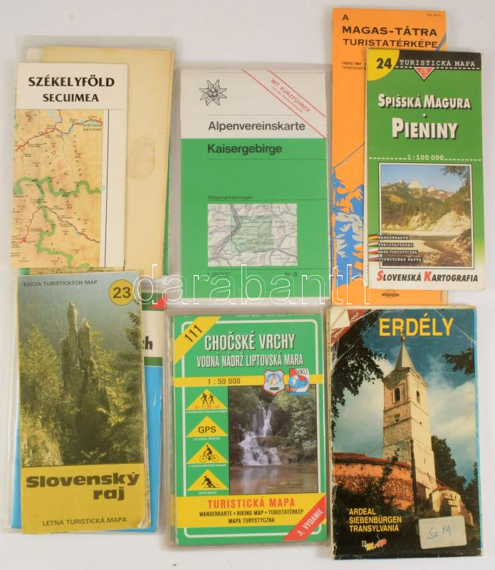 10 db vegyes turistatérkép: Székelyföld (Erdély), Ausztria, Szlovákia, Magas-Tátra, stb.