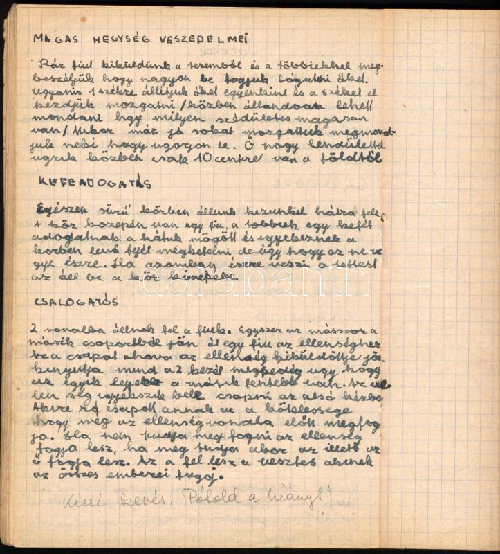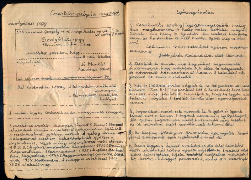 314-es Czuczor Gergely Cserkészcsapat Zrínyi-raj Gönczöl-örs kézzel írt cserkészpróbák anyaga