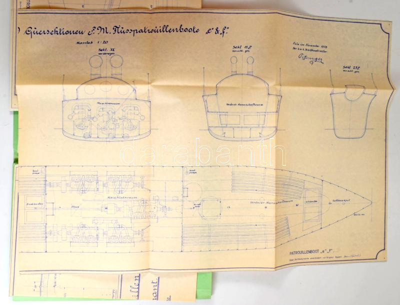 Patrouillenboot "Őrnaszád" tervek, k. u. k. tervekről készült modern másolatok, jó állapotban, 5 db