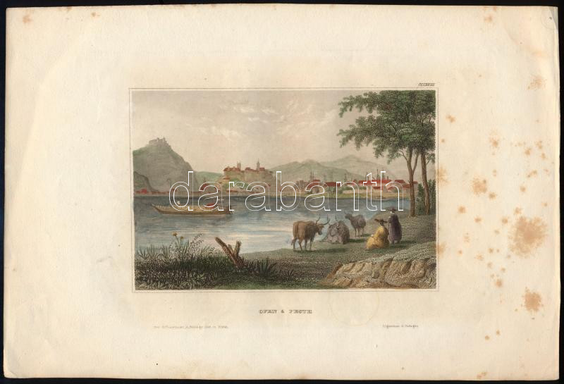 cca 1840-1850 Buda és Pest látképe (Ofen & Pesth). Színezett acélmetszet, papír, foltos, lapméret: 18,5x27 cm