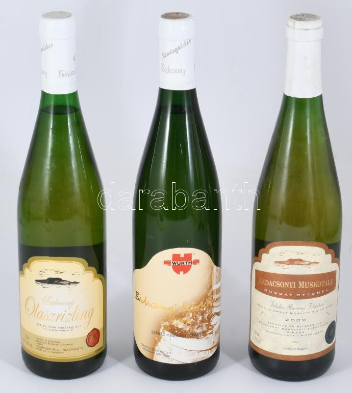 2001-2004 Badacsonyi Muskotály, Szürkebarát és Olaszrizling, 0,75l, bontatlan.