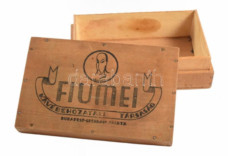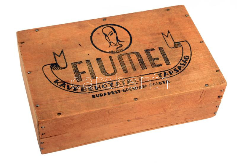 Fiumei Kávébehozatali Társaság fa kávés doboz, 10x16 cm