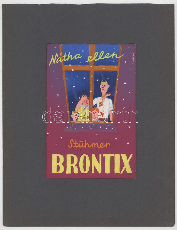 Ladányi József, működött a XX. sz. elején-közepén: Stühmer Brontix. Reklám- vagy plakátterv, 1940-es évek. Tempera, papír, jelzett, kartonra kasírozva 13x19 cm