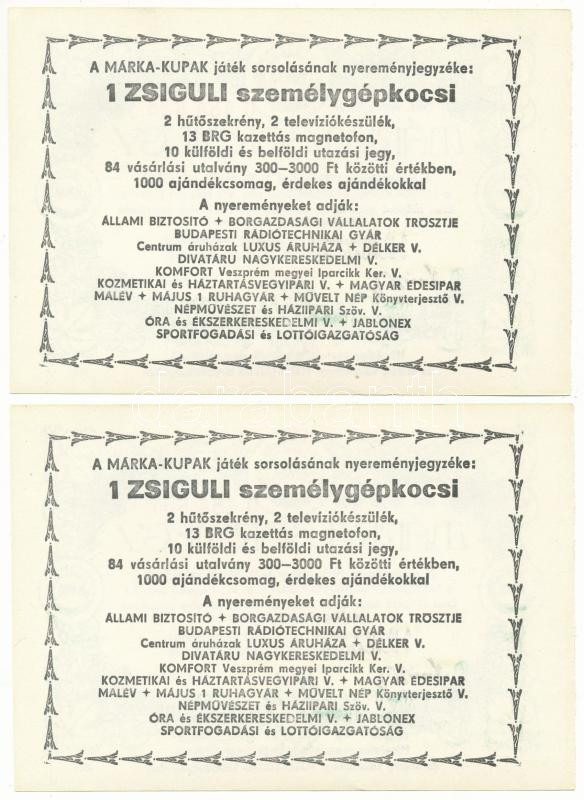 1981. "Márka Sorsjegy" (2x) a Borgazdasági Vállalatok Trösztjének sorsjátéka, I. sorozat, sorszámkövetők "0 484 656 - 0 484 657" sorszámú sorsjegyei T:AU