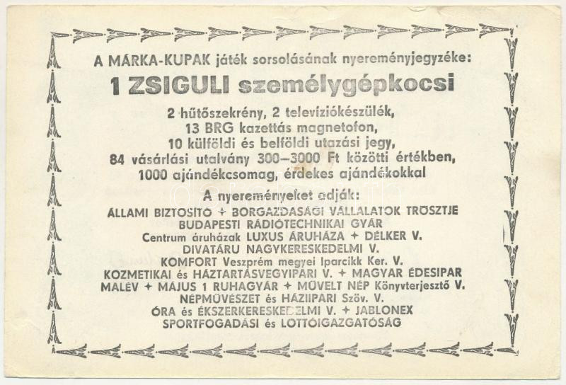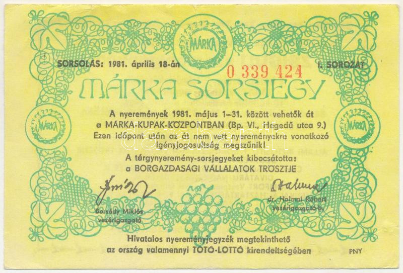 1981. "Márka Sorsjegy" a Borgazdasági Vállalatok Trösztjének sorsjátéka, III. sorozat, "0 339 424" sorszámú sorsjegye T:XF