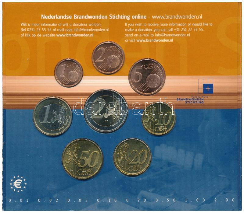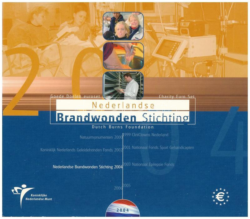 Netherlands 2004. 1 Cent - 2 Euro (8xdiff) coin set "Nederlandse Brandwonden Stichting" in cardboard sheet C:UNC