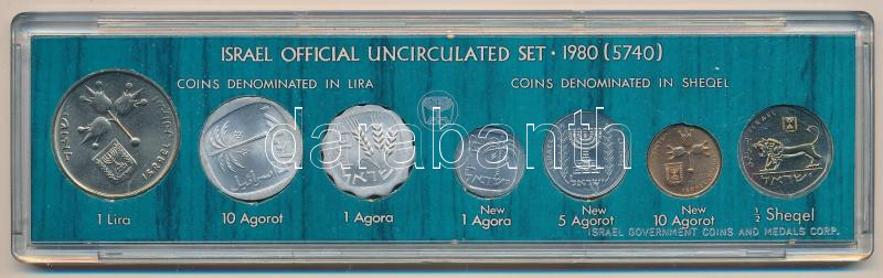 Izrael 1980. 1L-1/2S (7xklf) "Israel official uncirculated set 1980(5740)" forgalmi sor műanyag és papírtokban, angol nyelvű leírással T:UNC