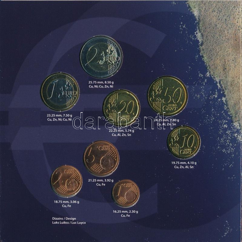 Latvia 2014. 1 Cent - 2 Euro (8xdiff) coin set "Latvian coinage" in cardboard sheet C:UNC