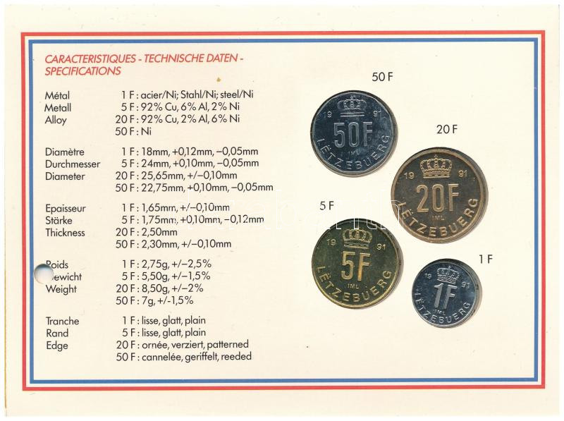 Luxemburg 1991. 1Fr - 50Fr (4xklf) forgalmi sor "Luxemburg nagyhercege" lyukasztott karton dísztokban T:UNC