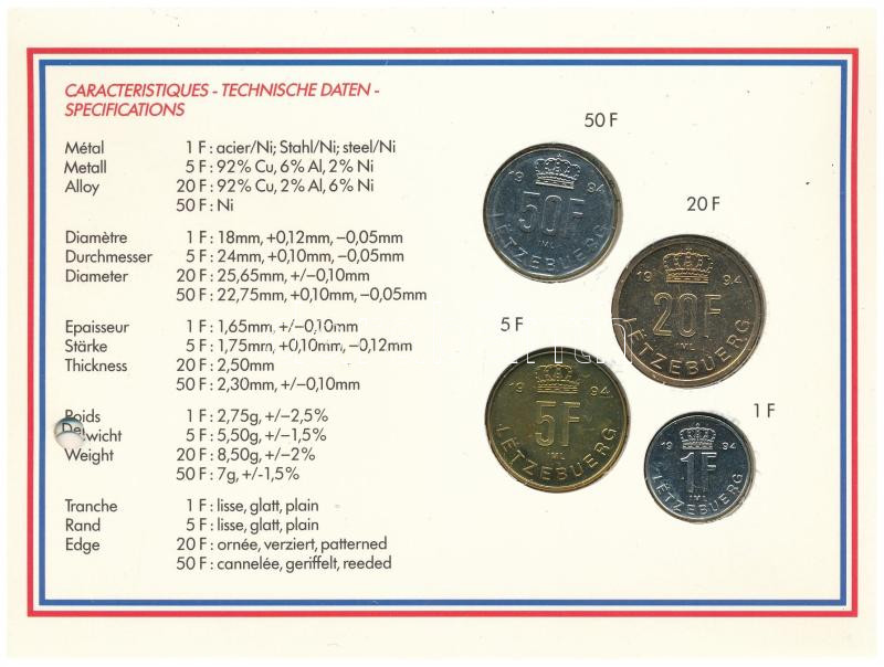 Luxemburg 1994. 1Fr - 50Fr (4xklf) forgalmi sor "Luxemburg nagyhercege" lyukasztott karton dísztokban T:UNC