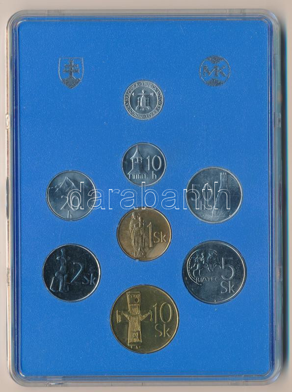 Szlovákia 1993. 10h-10K (7xklf) forgalmi sor + "Körmöcbányai Pénzverde / 1328-1993" fém emlékérem műanyag tokban T:BU