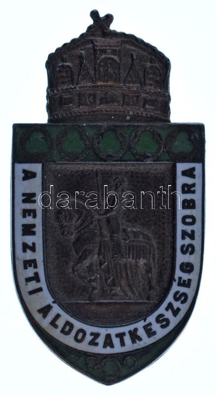 1915 k. "A Nemzeti Áldozatkészség Szobra" zománcozott bronz jelvény, hátlapon "HIVATALOS KIADVÁNY" felirattal, vízszintes tűvel (47x24mm) T:XF kisebb zománchibák
