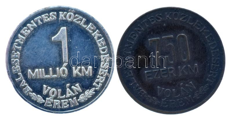 1990- "Balesetmentes közlekedésért érem - Volán" (2xklf) bronz és ezüstözött fém jelvények 750 ezer Km és 1 millió Km után T:AU