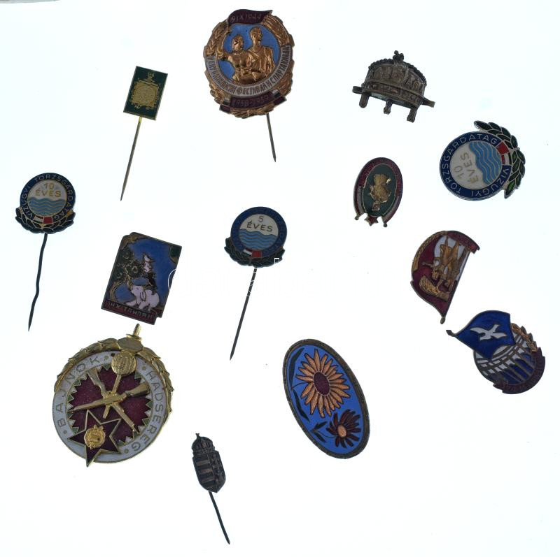 Vegyes, 12db-os magyar és külföldi jelvénytétel, közte zománcozott darabokkal + Szent Korona sapkajelvény T:AU-VF közte sérült