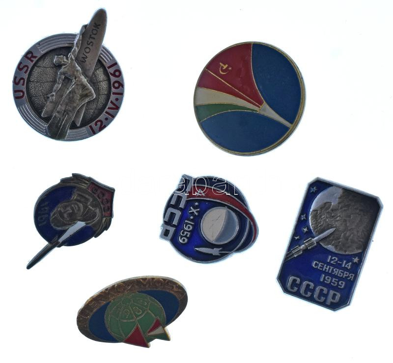 Vegyes, 6db-os magyar és szovjet űrhajós jelvény, közte "Interkozmosz", "Vosztok", "Gagarin" T:AU