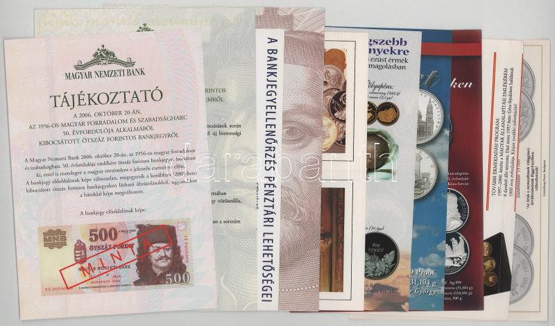 1996-2006. 10xklf színes MNB tájékoztató szép állapotban, közte Tájékoztató 500Ft-os, 1000Ft-os, 10.000Ft-os bankjegyről, Családi események, Budapest, Történelmi évfordulók ezüst érméken, Pannonhalma alapításának 1000. évfordulója, 1100 éves Magyarország