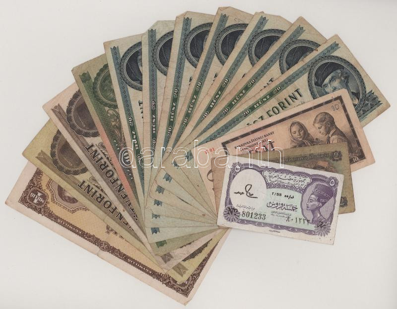 Vegyes 14db-os nagyrészt forint bankjegy tétel, közte: pengő, csehszlovák, egyiptomi és bolgár papírpénzek T:F-VG