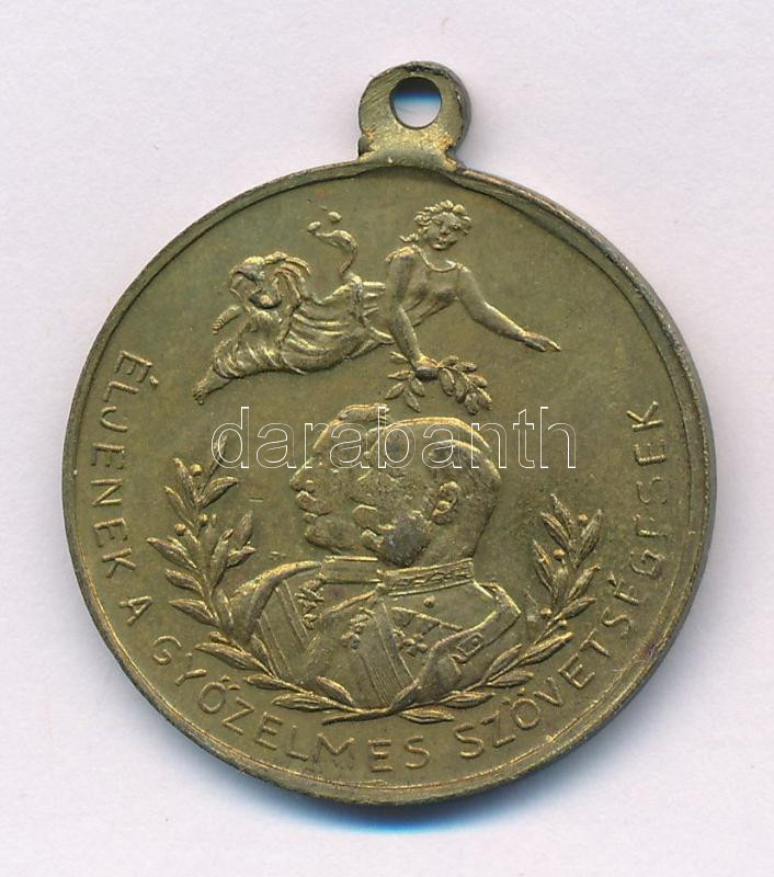 1914-1918 k. "Éljenek a győzelmes szövetségesek / Isten áld meg a magyart!" bronz emlékérem füllel (29mm) T:XF patina