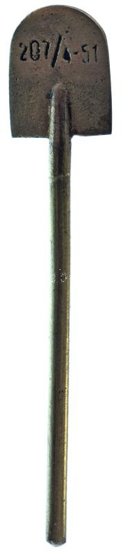 193-1940 k. "207 / 4-51." Munkásszázad ásó alakú bronz jelvénye, "Gellért" gyártói jelzéssel (50x10mm) T:AU kis patina