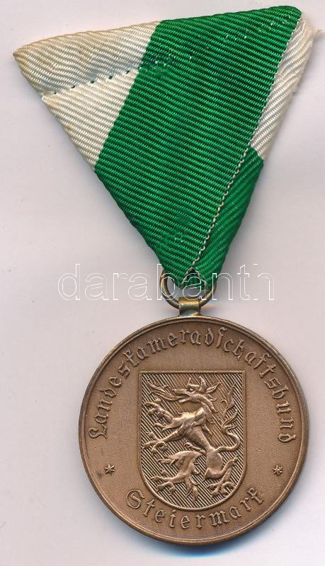 Ausztria DN "Landeskameradschaftsbund - Steiermark / 25" a Stájeroszági Veteránszövetség 25 éves jubileumi érme, zöld-fehér mellszalagon (36mm) T:AU