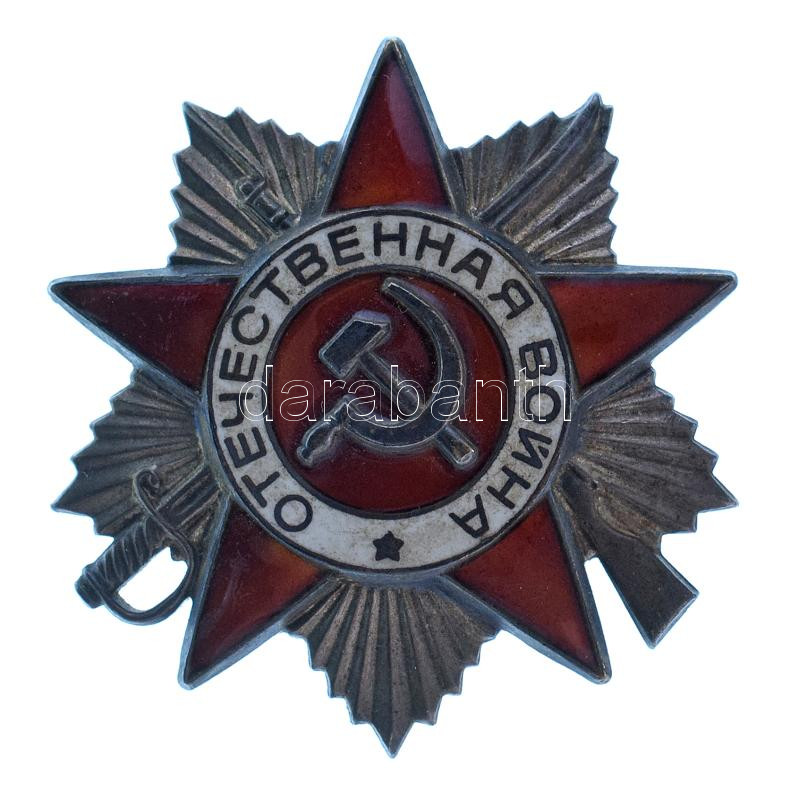 Szovjetunió 1985 k. "Honvédő Háború Érdemrend II. osztálya" zománcozott, jelzetlen Ag kitüntetés csavaros hátlappal, hátlapján "5101224" sorszámmal T:AU