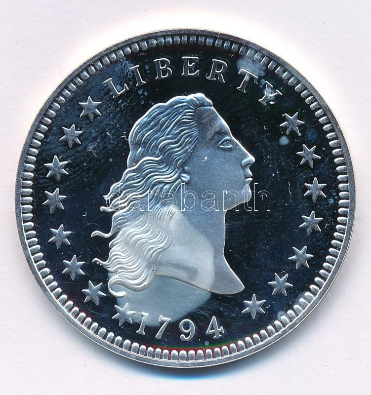 "Amerikai 1794-es 1$ "Szabadság dollár" érmének jelzett utánverete" Ag (20g/0.999/40mm) kapszulában T:PP foltos
