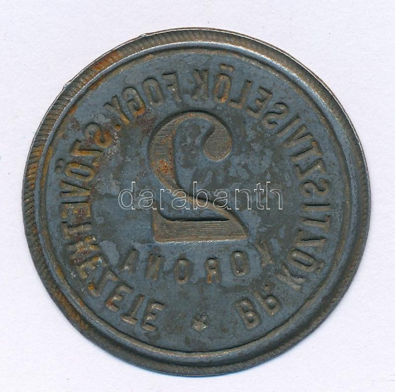 1920 k. 2K "BP. Köztisztviselők Fogy. Szövetkezete" Fe lemez szükségpénz T:XF rozsda