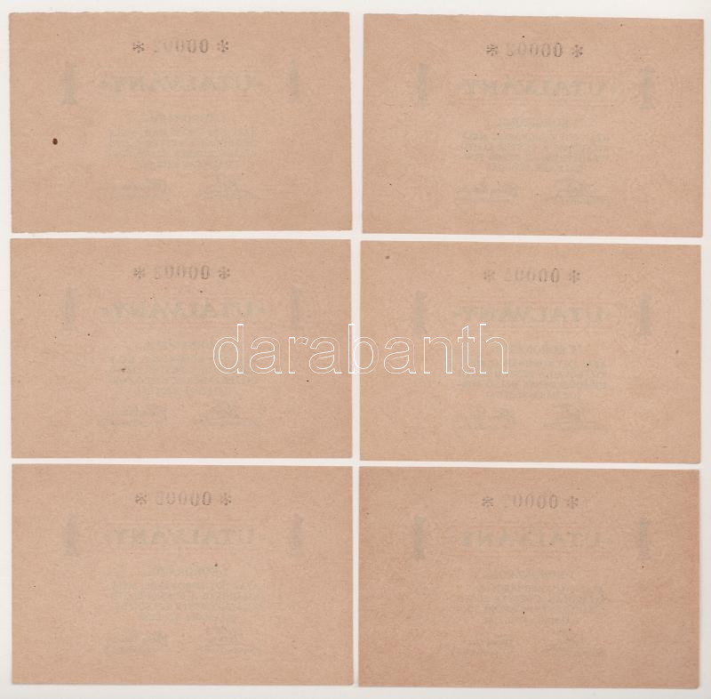 1920 k. Budapest 1K "Pester Lloyd" utalvány (6x) sorszámkövetők "0002-0007" T:AU