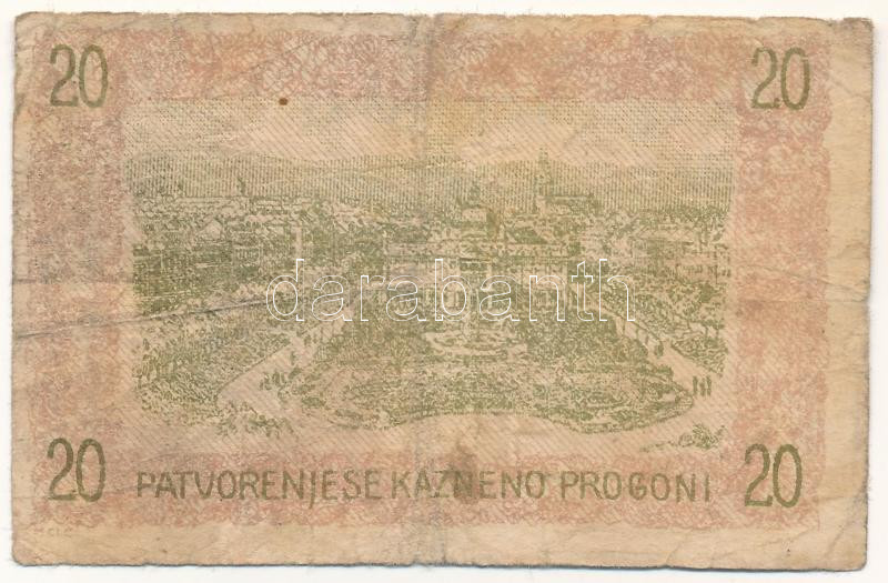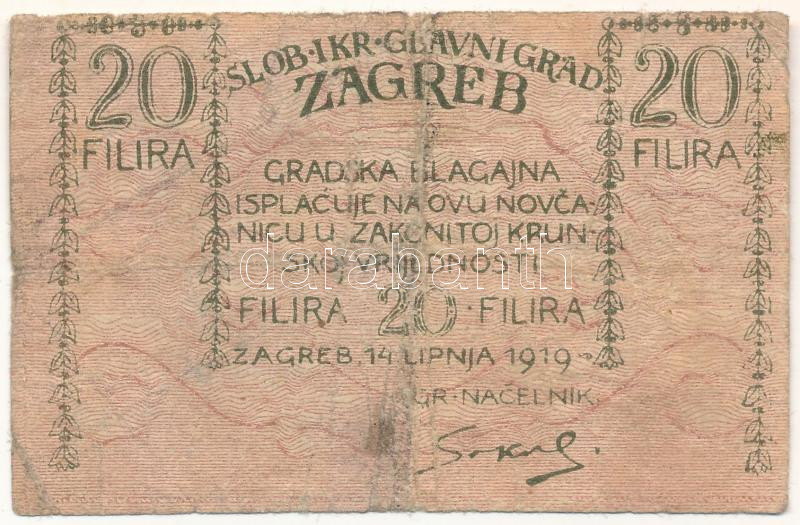Jugoszlávia / Szerb-Horvát-Szlovén Királyság / Zágráb 1919. 20f T:F folt