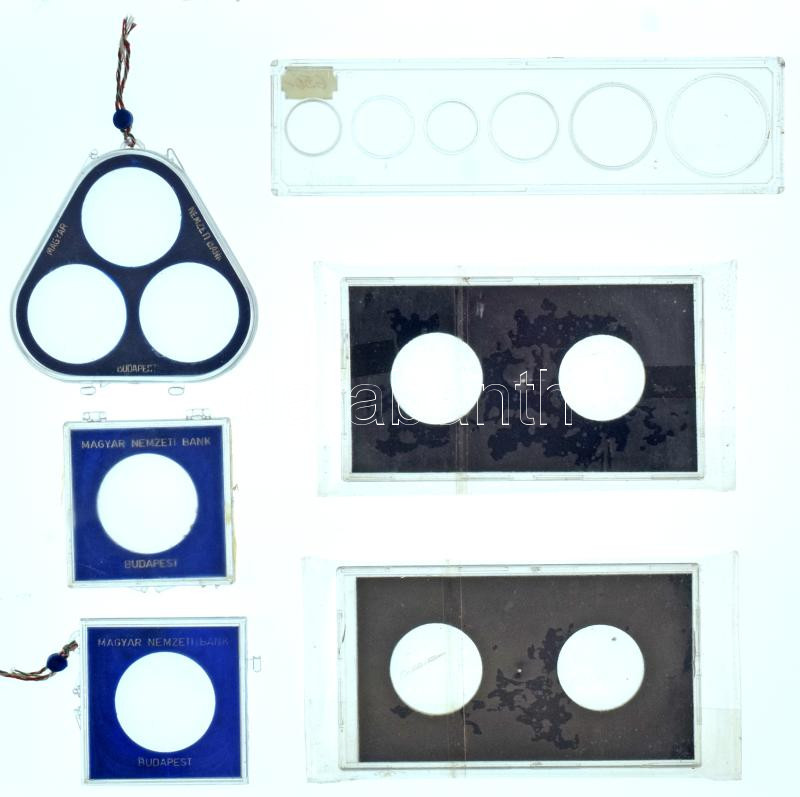 6db üres műanyag érmetartó tok, közte 3db MNB-s, egy pedig USA forgalmi sorhoz, használt állapotban (közte sérültek)