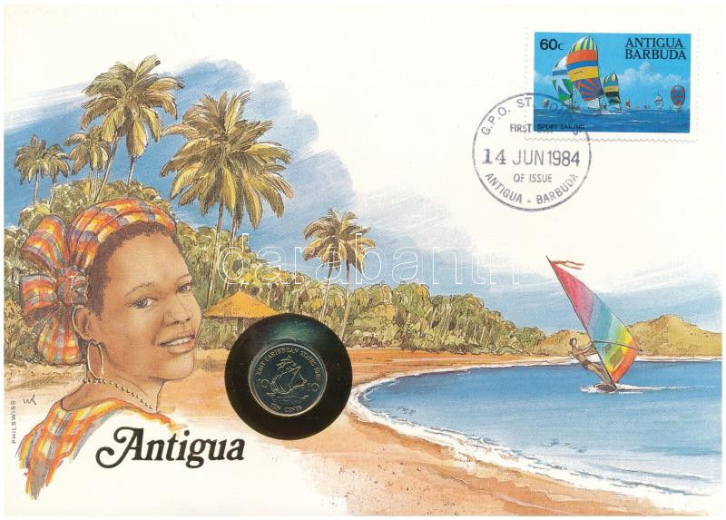 East Caribbean States / Antigua 1981. 10 Cents in envelope with stamp and cancellation, with German description C:UNC