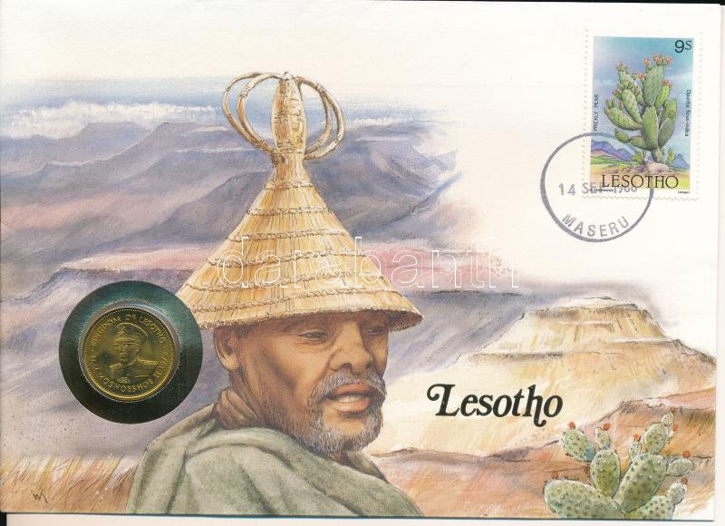 Lesotho 1979. 5l felbélyegzett borítékban, ENSZ bélyegzéssel, német nyelvű leírással T:UNC Lesotho 1979. 5 Lisente in envelope with United Nations stamp and cancellation, with German description C:UNC