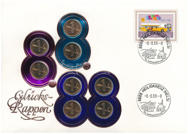 Svájc 1984. 1r bronz (8x) "Szerencselevél- 88.8.8. Heiligkreuz" felbélyegzett borítékon, alkalmi bélyegzővel T:UNC