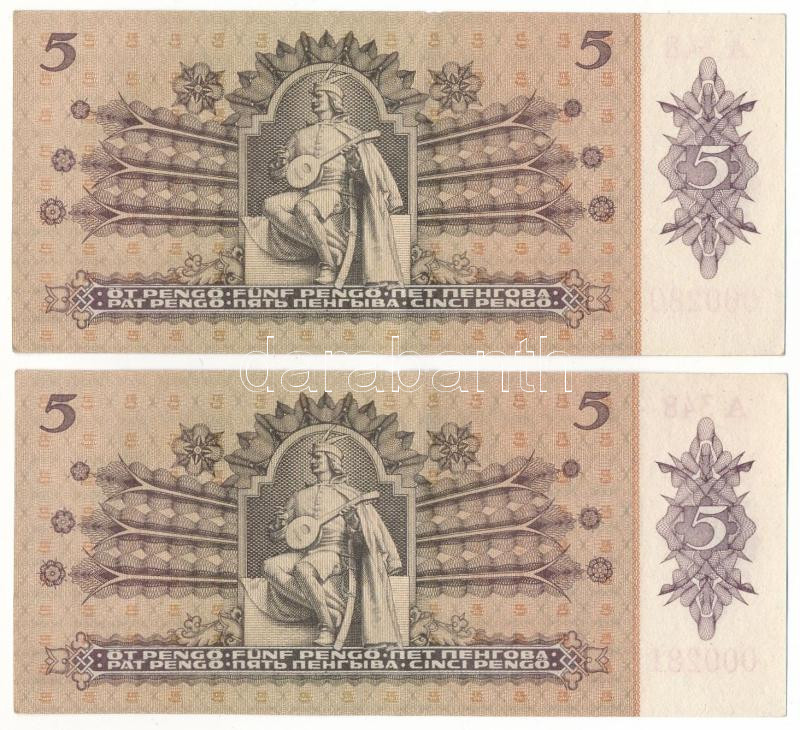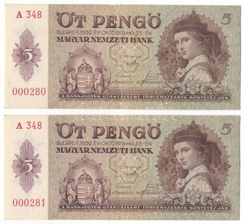 1939. 5P (2x) alacsony sorszámú sorszámkövetők "A 348 000280 - A 348 000281" T:XF