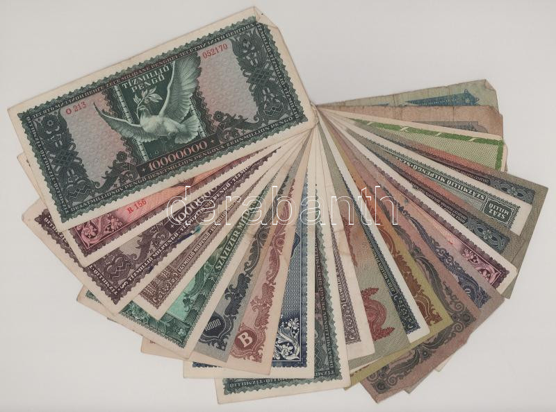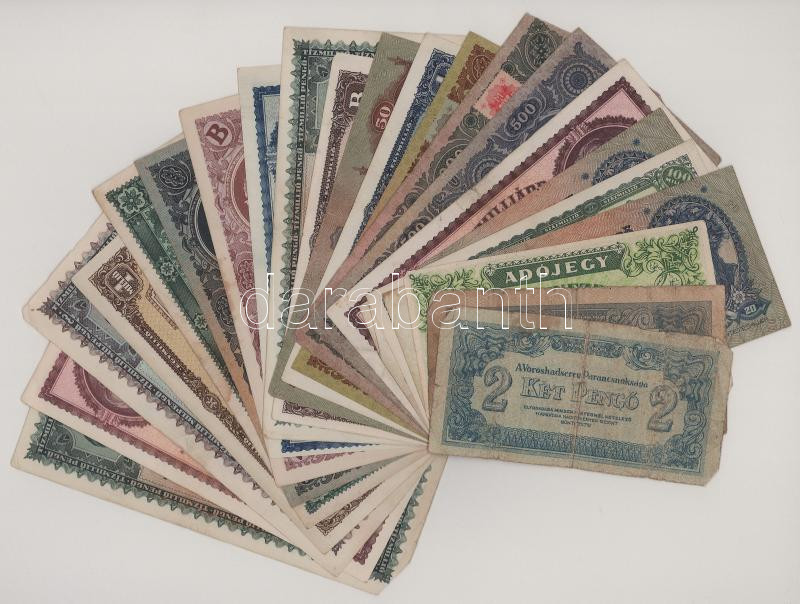 Vegyes 22db-os pengő bankjegy tétel, közte kevés adópengő és "Vöröshadsereg Parancsnoksága" pengők