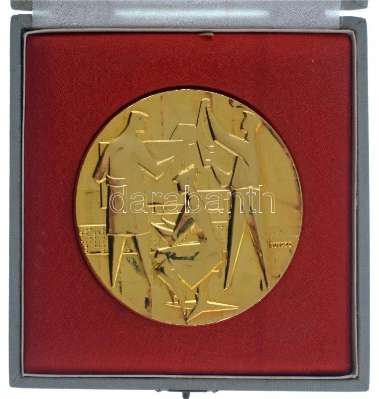 Vincze Dénes (1914-1972) DN Szocreál tudomány témájú egyoldalas, aranyozott bronz emlékérem (78mm) dísztokban T:AU
