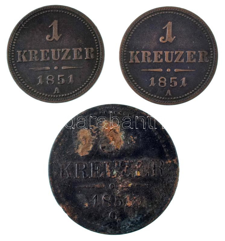 1851G 3kr Cu + 1851A 1kr Cu (2x) T:VF-F patina, oxidáció, ph.