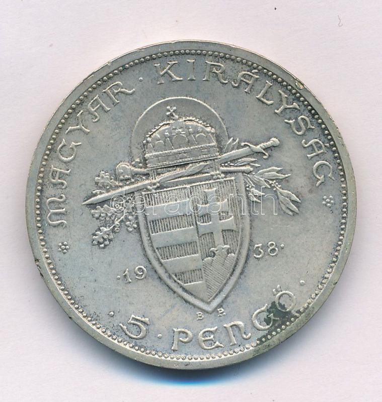 1938. 5P Ag "Szent István" T:XF patina, kis ph.