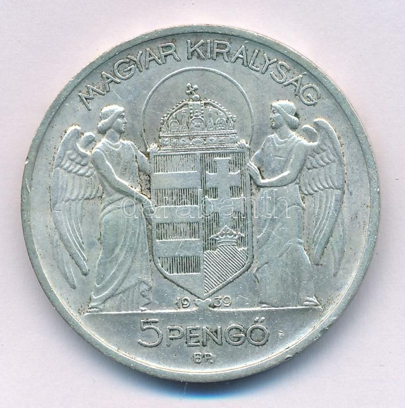 1939. 5P Ag "Horthy balra" enyhén hajas T:XF patina
