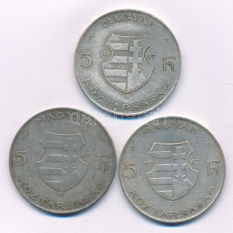 1947. 5Ft Ag "Kossuth" (3x) T:XF,VF patina, korábbi tisztításból származó felületi karcok