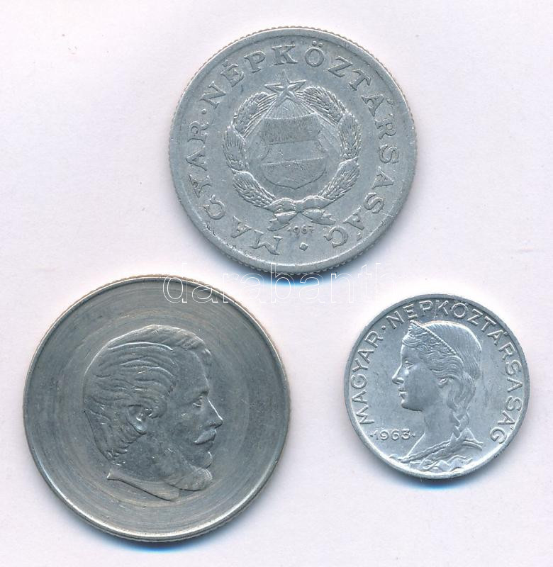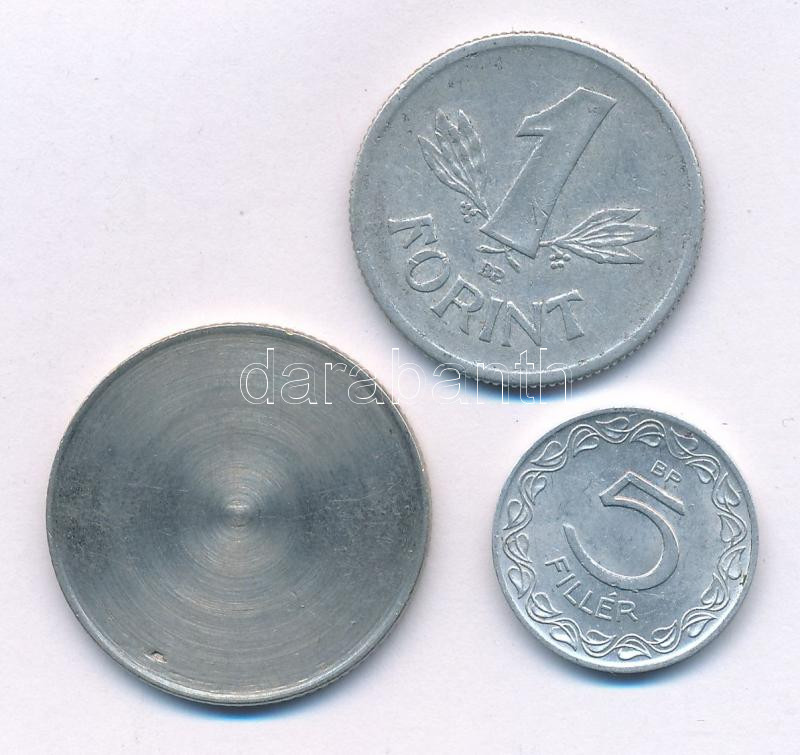 1963. 5f Al elfordult hátlap + 1967. 1Ft Al elfordult hátlap + DN 5Ft Cu-Ni esztergált, csak az értékjelzés látható T:vegyes