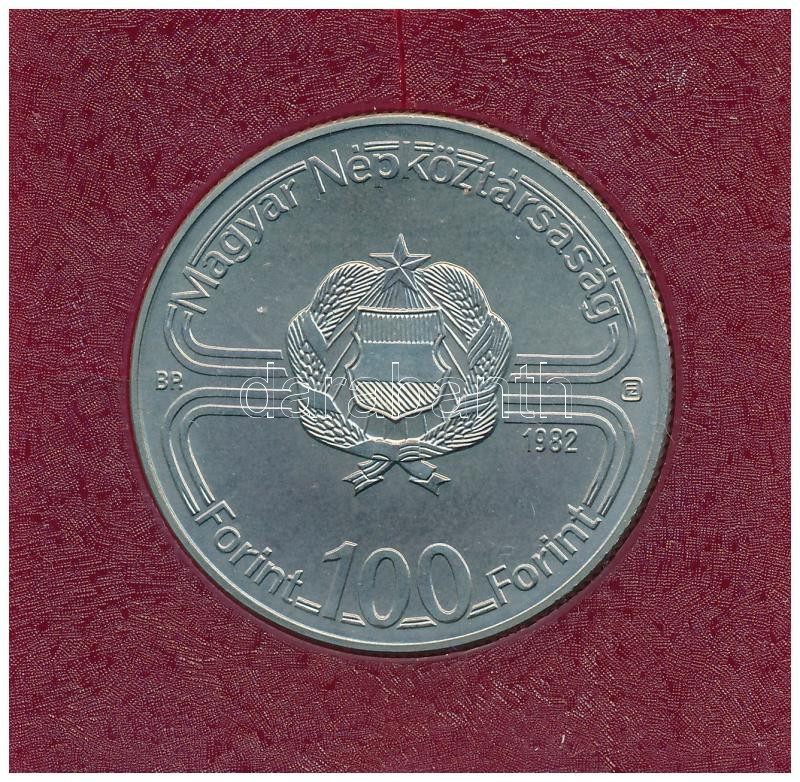 1982. 100Ft Cu-Ni "Labdarúgó világbajnokság 1982" bordó műbőr tokban, tanúsítvánnyal T:BU