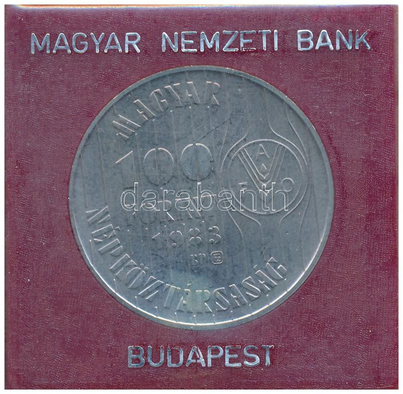 1983. 100Ft Cu-Ni "FAO - Több gabonát a világnak" bordó műbőr tokban, tanúsítvánnyal T:BU