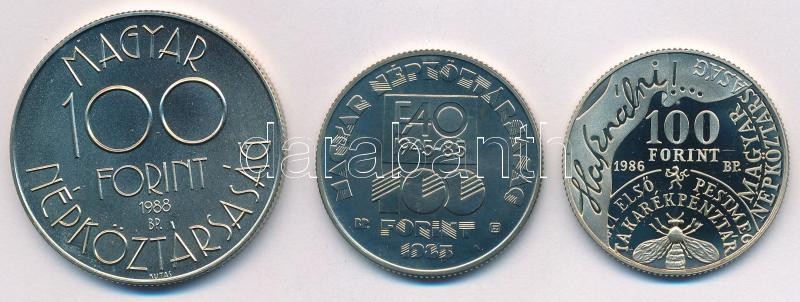 1985. 100Ft Cu-Ni "FAO" + 1986. 100Ft Cu-Ni-Zn "Fáy András" + 1988. 100Ft Cu-Ni-Zn "Labdarúgó Világbajnokság 1990 - Két játékos" T:UNC,AU,PP