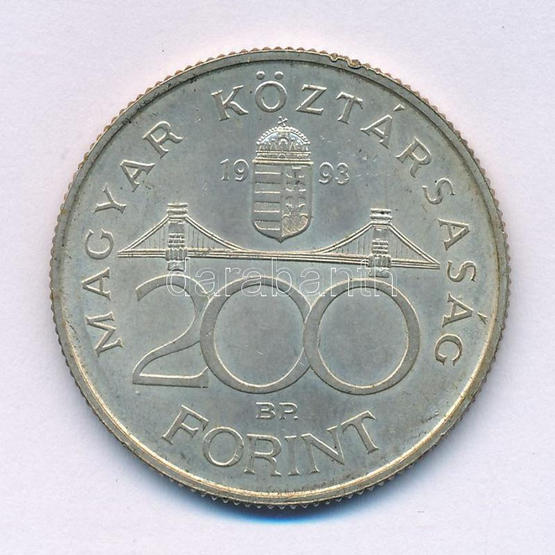 1993. 200Ft Ag "MNB" T:AU,XF kis patina