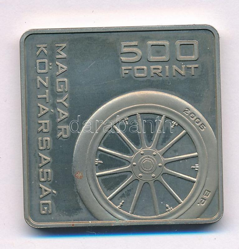 2005. 500Ft Cu-Ni "100 éves az első magyar postaautó" kapszulában T:AU (eredetileg PP) folt, ködösödés