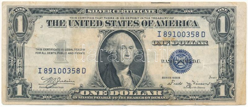 Amerikai Egyesült Államok 1935B 1$ "Silver Certificate", kék pecsét, Szign.: "William Alexander Julian" & "Frederick Moore Vinson", "I 89100358 D" T:F fo.