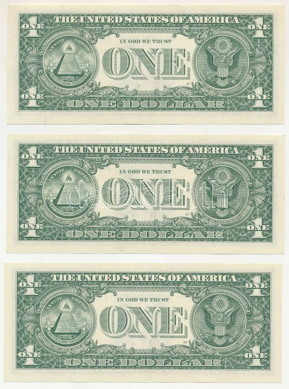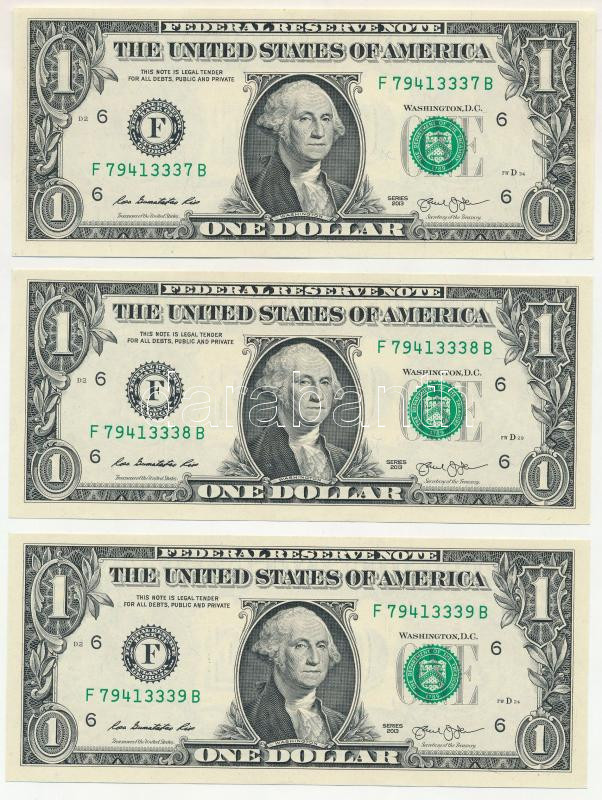 Amerikai Egyesült Államok 2013. 1$ (3x) sorszámkövetők "F 79413337 B - F 79413339 B" T:UNC